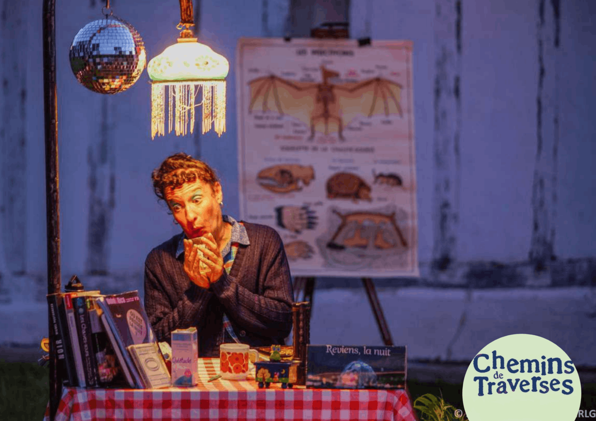 Martine Tarot est la Madame Soleil de vos villes et villages. Dans cette nouvelle bonne aventure, la truculente Martine est appelée d’urgence par un club d’astronomes. L’avenir de la Nuit est sombre pour cause de pollution lumineuse ! Après avoir tiré les cartes du Tarot de la Nuit et mené ses guêtres partout à la recherche de preuves et témoins pour éclairer ses visions, elle vous livre aujourd’hui les résultats de son enquête. Demain, de quoi la Nuit sera faite, elle seule le sait !